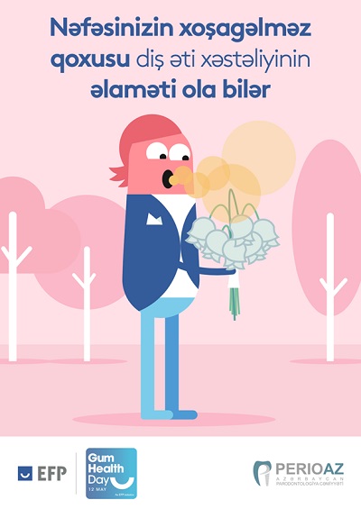 Bu ilki Diş Əti Sağlamlığı Günü onlayn formatda keçirildi.Tədbirdə Ə.Əliyev adına Azərbaycan Dövlət Həkimləri Təkmilləşdirmə İnstitutunun stomatologiya və üz-çənə cərrahiyyəsi kafedrasının dosenti, Azərbaycan Parodontologiya Cəmiyyətinin prezidenti,t.ü.f.d.Cavid Əhmədbəyli tərəfindən “Diş əti sağlamlığı: Diş əti xəstəliklərinin diaqnostikası və müalicəsi” mövzusunda onlayn məruzələr oxundu. Azərbaycan Tibb Universitetinin ortopedik stomatologiya kafedrasının assistenti, Azərbaycan Parodontologiya Cəmiyyətinin vitse-prezidenti, Diş Əti Sağlamlığı Günü Milli koordinatoru Hənifə Musayeva tərəfindən Avropa Parodontologiya Federasiyasının bu günə həsr olunmuş və Azərbaycan dilində tərtib olunmuş həssas dişlər, nəfəsin xoşagəlməz qoxusu, laxlayan dişlər və siqaret istifadəsi kimi amillərin diş əti xəstəliyinin əlaməti olması və stomatoloqa ziyarətin əhəmiyyətini göstərən dörd ədəd qısa animasiya filmləri və posterlər ölkəmizdə fəaliyyət göstərən həkimlərə və ictimaiyyətə təqdim olundu.