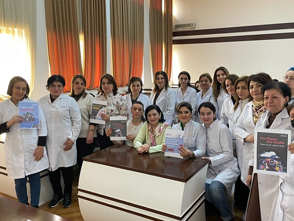 Azərbaycan Dövlət Həkimləri Təkmilləşdirmə İnstitutun pediatriya kafedrasında Ümumdünya Sağlamlıq Gününə həsr edilmiş seminar keçirilmişdir. Seminarda Yevlax, Gəncə, Bərdə, Qəbələ, Samux, Göranboy, Balakən rayonlarından onlayn formatda qatılan müdavimlər və ixtisaslaşma kursunda iştirak edən həkim-pediatrlar iştirak etmişlər. Kafedranın dosenti Mətanət Qaraxanova 2022-ci ildə 7 Aprel Ümumdünya Sağlamlıq Gününün “Bizim planet,bizim sağlamlığımız. Rifahlı cəmiyyətlər sağlam cəmiyyətlərdir!” şüarını səsləndirərək, ÜST-n içtimayyətin diqqətini pandemiyaya, planetin çirklənməsinə, xərçəng, astma və ürək-damar xəstəliklərinin artması şəraitində insanların sağlam olmasına və planetin sağlam saxlanması üçün lazım olan təcili tədbirlərə təşviq etməsini vurğulamışdır. O, seminar iştirakçılarına hava və suyun çirklənməsi, iqlim dəyişməsi səbəbindən dünyada ağciyər xərçəngi, astma, ürək xəstəlikləri və insult kimi xəstəliklərin yayılmasına dair ÜST məlumatlarını çatdırdı. Eyni zamanda tibbi tullantıların təhlükəsiz idarə edilməsinin hepatit B, C və digər yoluxucu xəstəliklərin profilaktikası üçün mühüm rol oynadığını da qeyd etdi.