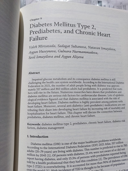 Bu fəsildə prediabet, şəkərli diabet tip 2 və xronik ürək çatışmazlığının diaqnostika və müalicəsinə dair yeni yanaşmalar, yeni müalicə üsulları ətraflı şəkildə şərh olunmuş, Azərbaycan Endokrinologiya, Diabetologiya və Terapevtik təlimat assosasiasiyasının prediabet və şəkərli diabet tip 2-ə görə diaqnostik meyarları da göstərilmişdir.Eyni zamanda burada terapiya kafedrasında aparılmış çoxsaylı tədqiqatların nəticələri də öz əksini tapmış, diabet və prediabetli şəxslərdə ürək çatışmazlığının xüsusiyyətləri və idarə olunması, həmçinin əksinə ürək çatışmazlığı olan xəstələrdə diabet və prediabetin idarə olunması daha dəqiq təsvir olunmuşdur.