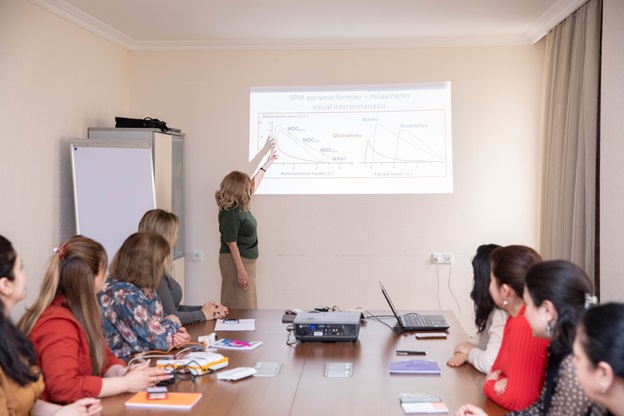 İlk kurs 04.03-07.03.2024-cü il tarixində institutunun terapiya kafedrasında “Pulmonologiyada funksional diaqnostika üsulları. Spirometriya” mövzusunda keçirilmişdir. Kursda 15 nəfər iştirak etdi. Onların arasında terapevt, pulmonoloq və allerqoloqlar yer almışdılar. Kursun praktiki hissəsi “Spirolab” spiroqrafdan işdifadə etməklə həyata keçirildi və metodika institutumuzun bazası olan akademik M.Mirqasımov adına Respublika Klinik Xəstəxanasında xəstələr üzərində əyani olaraq göstərildi. Eyni zamanda həkim-müdavimlər institutumuzun digər bazası olan “Leyla” klinikasında təcrübi məşğələlərdə çoxsaylı xəstələrin müayinəsində də iştirak etdilər. Sonda müdavimlərin sorğusu aparıldı, keçirilən kursda spirometriyanın mənimsənilməsi barədə rəy verildi.