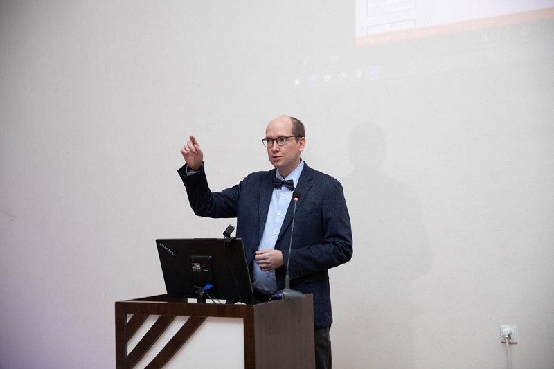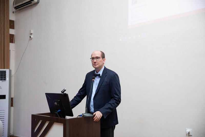 “Развитие» MMC-nin baş direktoru Vadim Qvozdkov çıxış edıb yaratdıları “Piroqov” interaktiv kompleksinın tibbi təhsil sistemındə tətbiqinin üstünlüklərindən danışdı və konfransın işinə müvəffəqiyyət arzuladı.