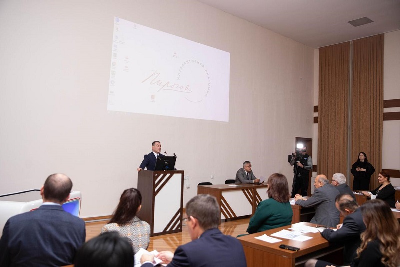 “Развитие» MMC-nin yaratdığı “Piroqov” interaktiv kompleksi tələbələrə və həkimlərə təbiət elmləri fənlərinin əksəriyyətini öyrətmək üçün ideal olan unikal tədris avadanlığıdır. 4000-dən çox 3D obyekt, eləcə də rahat interfeys vasitəsilə onlarla qarşılıqlı əlaqə qurmaq imkanı dərsləri əyani və yaddaqalan edəcək. Bu, sadəcə olaraq 3D anatomiya atlası deyil, həm də normal və patoloji quruluşun bir çox müfəssəl strukturlarının kompleksidir. Ona həmin strukturların rus, latın və ingilis dillərində daxili təsviri, həmçinin ultrasəs, KT, MRT məlumat bazası, region və sistem üzrə hazırlanmış səhnələrin baza məlumatları yerləşdirilmişdir. Kompleks həm Rusiyanın aparıcı universitetlərində, həm də xarici ölkələrin ixtisaslaşmış universitetlərində gələcək həkimlərin hazırlanmasında uğurla istifadə olunur. Konfransın açılış mərasimində Ə.Əliyev adına ADHTİ-nun rektoru professor Nazim Qasımov çıxış edub bu konfransın Azərbaycan Respublikası və Rusiya Federasiyası arasında mövcud olan əməkdaşlıq sazişləri çərçivəsində həyata keçirildiyini bildirdi. Ö, ölkəmizdə səhiyyə sistemində gedən inkşafdan danışaraq başçılıq etdiyi müəssisədə davamlı tibbi tədris konsepsiyası çərçivəsində tətbiq olunan innovasion yeniliklərdən məlumat verdi.