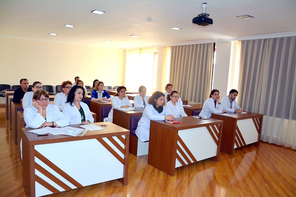 Xəbər verildiyi kimi Ə.Əliyev adına ADHTİ-da beynəlxalq təhsil proqramı çərçivəsində İ. Seçenov adına 1-ci Moskva Dövlət Tibb Universitetinin daxili xəsətliklərin propedevtikası kafedrasının professor-müəllim heyətinin iştirakı ilə 20.11.17–15.12.17-ci il tarixlərində “Qastroenterologiya” mövzusunda kurs keçirilir. Kursda professorlar Yelena Konstantinovna Baranskaya, Zinaida Aronovna Lemeşko, Oleq Samuiloviç Şifrin, Tatyana Lvovna Lapina mühazirələr oxuyacaq, məşgələlər aparacaqlar. Artıq bir həftədir həmin kurs başlanmışdır və kursun aparıcı müəllimi professor, t.e.d.,RF hökümətinin elm və texnika sahəsində mükafatı Laureatı,müalıcə fakultəsinin daxili xəsətliklərin propedevtikası kafedrası - “Qastroenterologiya” ixtisası üzrə ixtisaslaşmış həkimlərin diplomdansonrakı hazırlıq kursunun professoru,Rusiya Milli Qastroenterologiya və hepatologiya məktəbinin icraçı direktoru, Amerika Qastroenteroloji Assosiasiyasının üzvü Yelena Konstantinovna Baranskayadır.Maraqlı keçən mühazirə və məşğələlərdə iştirak edən müdavimlər arasımda aparılan sorğu göstərdi ki, beynəlxalq təhsil kifayət qədər effektlidir və onların böyük marağına səbəb olmuşdur. Həkimlərimiz bu kurslarda əldə etdikləri bilik və bacarıqları gündəlik iş praktikasına tətbiq edəcəklərini bildlrdilər.