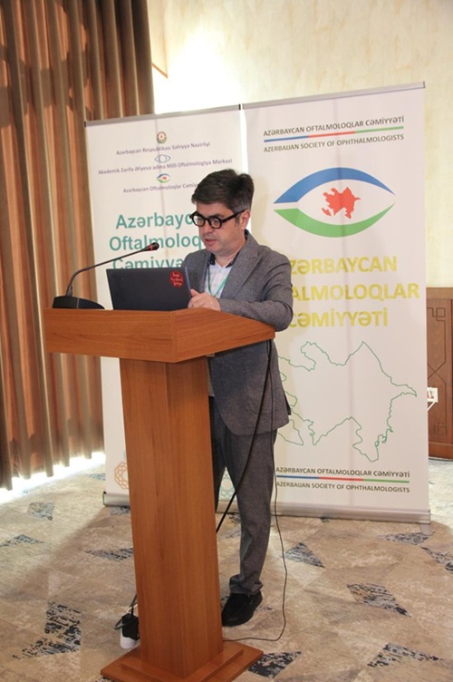 Konrfansda Ə.Əliyev adına ADHTİ-nin oftalmologiya kafedrasının əməkdaşlarından t.e.d. Yazgül Abdıyeva və kafedranın baş laborantı, akademik Z.Əliyeva adına Milli Oftalmologiya Mərkəzinin direktor müavini Ceyhun Nəzərli məruzələrlə çıxış ermişlər. “Azərbaycan Oftalmoloqlar Cəmiyyətinin dünəni və bu günü” adlı məruzə ilə çıxış edən t.e.d. Y.Abdıyeva Azərbaycan oftalmologiyasının tarixindən danışdı. “Akademik Z.Əliyeva adına Milli Oftalmologiya Mərkəzinin səyyar klinikasının 20 illik təcrübəsi” adlı məruzə ilə çıxış edən C.Nəzərli Mərkəzin səyyar klinikasının 20 illik fəaliyyəti barədə məlumat verdi. O, Prezident İlham Əliyevin sərəncamı ilə həyata keçirilən “Böyük Qayıdış” proqramına qoşularaq işğaldan azad edilmiş torpaqlarımızda səyyar klinika tərəfindən təşkil olunan humanitar tibbi aksiyalardan bəhs etdi.