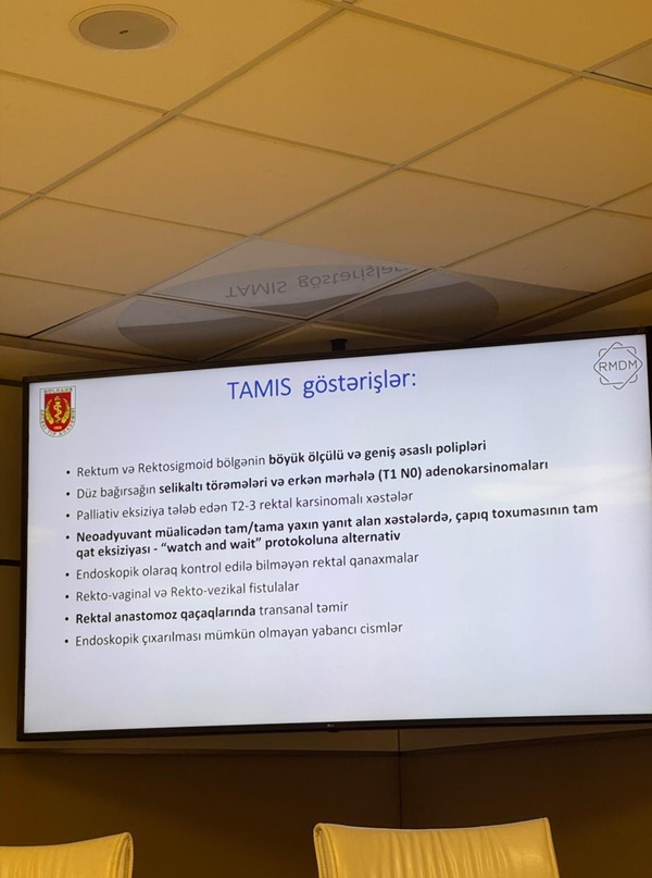 Həmin əməliyyatlar içra olunan zaman əməliyyatın gedişi Ə.Əliyev adına ADHTİ-nin ümumi və plastik cərrahiyyə kafedrasında tədris keçən müdavimlərə canlı yayında nümayiş etdirilir, bu zaman əmliyyat aparan cərrahla interaktiv sual-cavab etmək imkanı da olur. Növbəti TAMİS əməliyyatı kafedranın assistenti, Avropa (ESCP) və Türkiyə (TKRCD) kolorektal cərrahi dərnəklərinin Azərbaycan üzrə milli təmsilcisi İlqar İsmayılov tərəfindən icra olundu və müdavimlər üçün canlı yayında nümayiş etdirildi. Bu zaman əməliyyat zamanı ünvanlanan suallar cərrah tərəfindən ətraflı şəkildə cavablandırıldı.