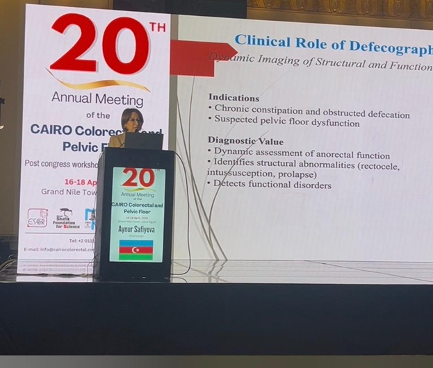 16-18 aprel 2026-cı il tarixlərində Misirin Qahirə şəhərində Aralıq dənizi Çanaq Dibi Xəstəlikləri Cəmiyyətinin (MSPFD) və Misir Yoğun və Düz Bağırsaq Cəmiyyətinin (ESCR) 20-ci İllik toplantısı keçirildi. Tədbirdə Misir, Almaniya, Italiya, Səudiyyə Ərəbistanı, Hindistan, Malayziya, Rusiya, Livan, Avstraliya və digər ölkələrdən dəvət olunmuş mütəxəssislər iştirak edərək, sahə üzrə son yenilikləri və innovativ yanaşmaları müzakirə etdilər. Toplantıda Ə.Əliyev adına Azərbaycan Dövlət Həkimləri Təkmilləşdirmə İnstitutunun ümumi və plastik cərrahiyyə kafedrasının dosenti, t.e.d. Aynur Səfiyeva “Obstruktiv defekasiya sindromunda defekoqrafiyanin rolu” movzusunda təqdimatla çıxış etdi. Eyni zamanda o, yerli mətbuata müsahibə də verərək ölkəmizdə colorektal cərrahiyyənin inkişafından danışdı.