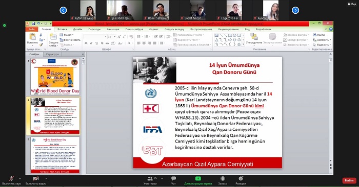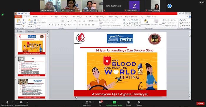 Vebinarda Ə.Əliyev adına Azərbaycan Dövlət Təkmilləşdirmə İnstitutunun təkmilləşdirmə kurslarında iştirak edən həkimlərə könüllü, təmənnasız, mütəmadi qan donorluğuna dair yerli və beynəlxalq mənbələrə əsaslanaraq, qan donorluğunun tarixi, təşkili və inkişafı, dünyada və Azərbaycanda qan donorluğu ilə əlaqədar olan vəziyyət, qan donorluğun insana təsirinin tibbi-sosial aspektləri barədə geniş məlumatlar təqdim olunmuşdur. Sonda ixtisasından asılı olmayaraq bütün tibb işçilərinə bu işdə fəal olub, əhalidə düzgün anlayışın formalaşması və məlumatlılığını artırmaq üçün səfərbər olması tövsiyələri edildi.