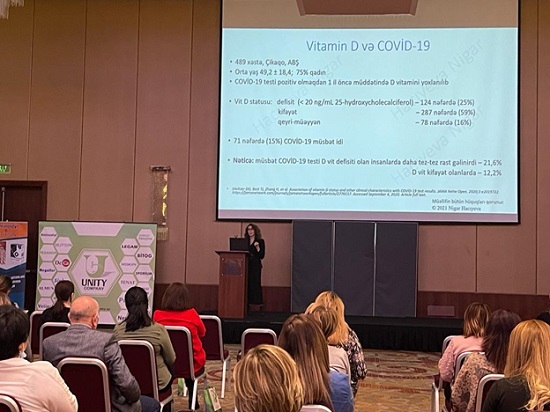 Ə.Əliyev adina ADHTİ-nun pediatriya kafedrasının dosenti t.ü.f.d. Nigar Hacıyeva “D vitamin haqqında həqiqətlər” mövzusu ilə çıxış etdi və çıxışında D vitaminin tədqiqatlarda yeni aşkarlanan təsirlərinə toxundu və onun uzun müddətli istifadəsinin nəticələri haqqında məlumat verdi.