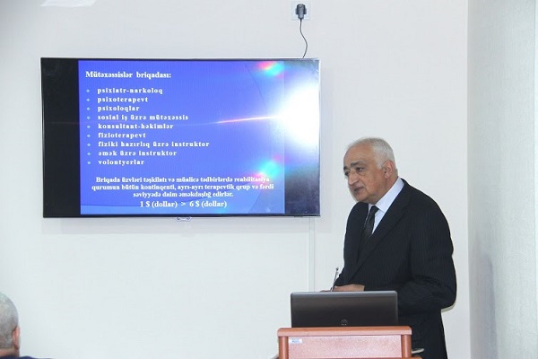 Ə.Əliyev adına ADHTİ-nin kollektivi də tədbirlər planında müəyyən olunmuş tapşırıqların icrası ilə fəal məşğul olur. Belə ki, institutun terapiya, kardiologiya, pediatriya və digər kafedralarının tədris planlarına narkomaniyanın tibbi-sosial fəsadları barəsində mühazirə və seminarlar daxil edilibdir. Bunun nəticəsində Respublikamızın həkimlərinin xeyli hissəsi bu barədə məlumatlanır. Psixiatriya və narkologiya kafedrası təqvim planına əsasən hər il narkoloqlar, ilkin tibb səviyyəsinin həkimləri üçün bir neçə müvafiq kurslar keçirir. Kafedranın əməkdaşları tərəfindən Respublikamızda ilk dəfə həkimlər və rezidentlər üçün “Narkologiya” dərs vəsaiti hazırlanıb və hal-hazırda o çap ərəfəsindədir. Ötən il ərzində kafedra tərəfindən Sumqayıt, Quba şəhərləri və onlara yaxın bölgələrdə müxtəlif ixtisaslı həkimlər üçün narkotik və psxixoaktiv vasitələrin asılılığı və onların fəsadlarının xüsusiyyətləri barəsində seminarlar keçirilibdir. Bu mövzu həmçinin Naxçıvan Muxtar Respublikada keçirilən 2 həftəlik kursda da mühazirə və seminarlarda işıqlandırılmışdır.Bü günki “Narkologiyanın aktual məsələlərinə” həsr olunan birgə tədbirimiz səhiyyə işçilərinin bu istiqamətdə davam edən səylərinin nümunəsi kimi qəbul oluna bilər. Ümüdvaram ki,dəyirmi masada səslənən son elmi nailiyyətlər və yeniliklər həkimlərimizin gündəlik iş praktikası üçün yararlı olacaqdır.