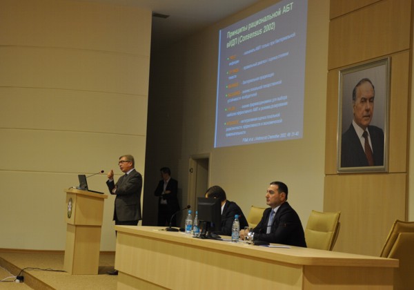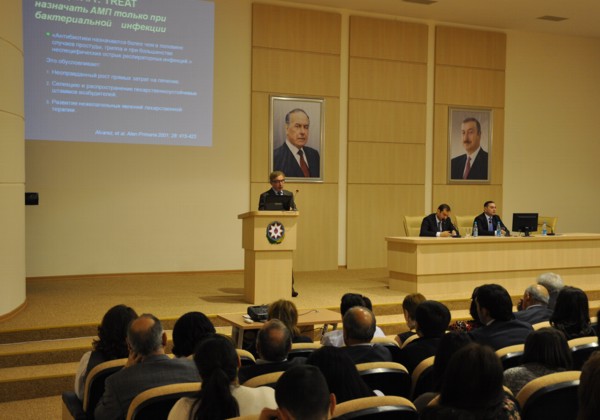 Elmi-Praktik konfransı giriş sözü ilə Ə.Əliyev ad.Azərbaycan Dövlət Həkimləri Təkmilləşmə İnstitutunun rektoru t.e.d. N.A.Qasımov açdı. O qeyd etdi ki, mövzu Səhiyyəmiz üçün çox aktualdır. Hazırda infeksion xəstəliklərin əhatə dairəsi daim artır və dəyişir. Müasir dövr üçün yeni infeksiyaların aşkarlanması, mikroorqanizmlərin tətbiq edilən preparatlara qarşı davamlılığı və bu preparatların yan təsirlərinin üzə çıxması, köhnə antibiotiklərin yeniləri ilə əvəz olunması xarakterikdir. Bu baxımdan hazırda mövcud olan müasir antibakterial terapiyanın prinsipləri ilə həkimlərin tanış olması çox önəmlidir.
